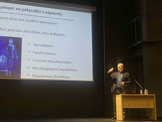 Νεκτάριος Ταβερναράκης, Καθηγητής Μοριακής Βιολογίας Συστημάτων στην Ιατρική Σχολή του Πανεπιστήμιου Κρήτης και Διευθυντής Ερευνών στο Ινστιτούτο Μοριακής Βιολογίας και Βιοτεχνολογίας (ΙΜΒΒ) του Ιδρύματος Τεχνολογίας και Έρευνας (ΙΤΕ) με θέμα “ Το μυστήριο της γήρανσης και των νευροεκφυλιστικών ασθενειών: Τι μας διδάσκει η σύγχρονη επιστημονική έρευνα ’’.