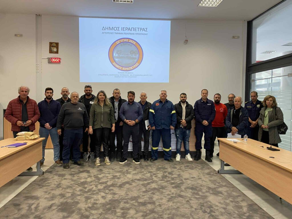 Πραγματοποιήθηκε τη Δευτέρα 15 Δεκεμβρίου 2025, παρουσία του Δημάρχου Ιεράπετρας Εμμανουήλ Φραγκούλη, «Άσκηση επί χάρτου» για τα πλημμυρικά φαινόμενα, με την κωδική ονομασία «ΩΓΥΓΗΣ 2025». Τη διοργάνωση, παρουσίαση και το συντονισμό είχε το Τμήμα Πολιτικής Προστασίας του Δήμου Ιεράπετρας.