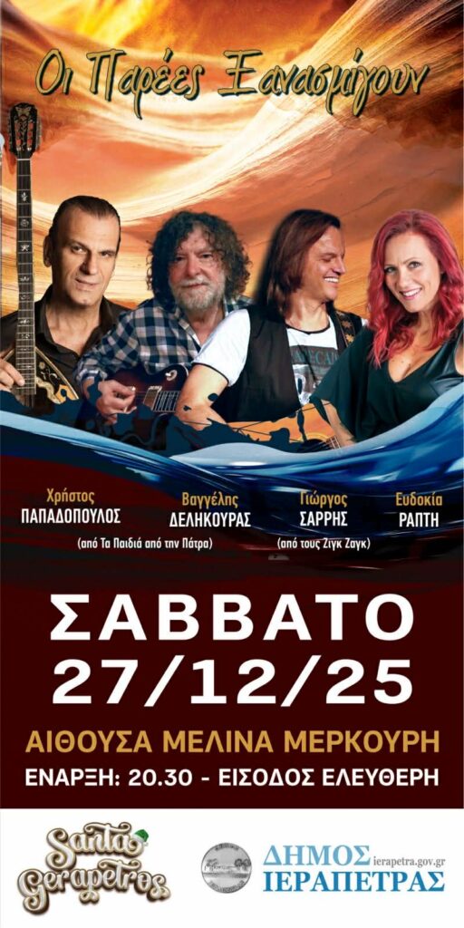 ΜΟΥΣΙΚΗ ΕΚΔΗΛΩΣΗ ΔΗΜΟΥ ΙΕΡΑΠΕΤΡΑΣ – ΣΑΒΒΑΤΟ 27 ΔΕΚΕΜΒΡΙΟΥ